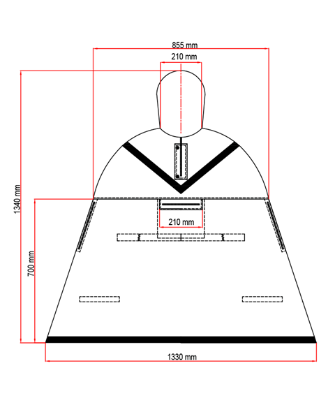 Kapuze mit seitlichem Sichtfenster, sowie zwei seitlichen Öffnungen mit Reißverschlüssen
